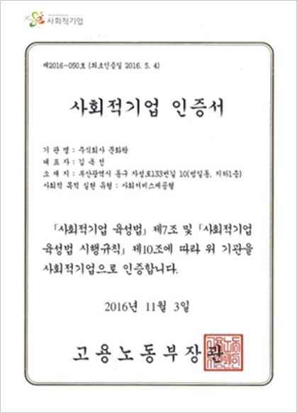 | 2014-2017 | 2016 인증사회적기업 으로 지정 |