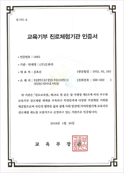 진료체험기관 인증서